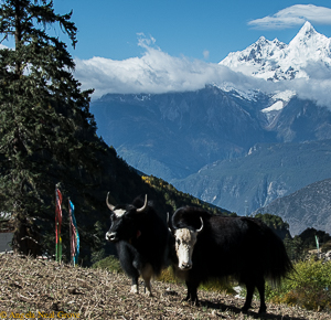 Meili, a hamlet of five families, was next. At 12,500 ft, the Songstam lodge faces the Meili Xue Shan Mountains crowned by Mt. Kawagebo peaking at 22,000 ft. I was there two nights so had two chances to see sunrise over a mountain often enveloped in misty shrouds.