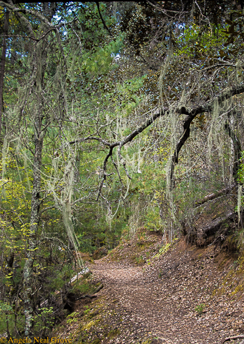 High above us was a remote village. Until six years ago, when a narrow concrete road was constructed, the only access was by horse. We walked the old horse trail. Autumn foliage glowed yellow and red, swags of moss were prayer flags of the forest.